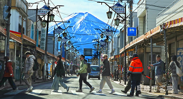 | 富士山与保留着昭和气息的商业街也很相配(山梨县富士吉田市) |