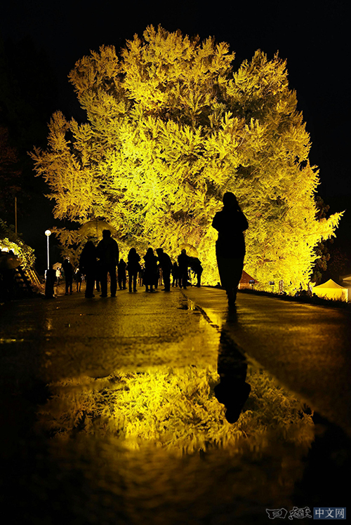 日本青森县深浦町的“北金泽大银杏”是国家天然纪念物,作为日本最大的银杏树而知名,这棵树目前已有一半变成黄色,即将迎来观赏期。