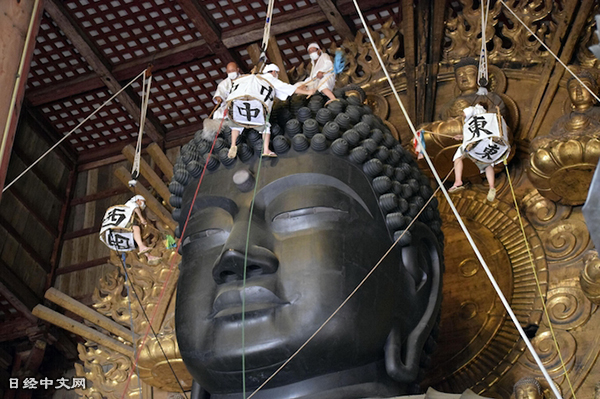 奈良东大寺时隔3年为大佛“除尘”