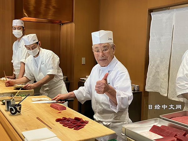 仅白天营业,采用完全预订制,要想进店需要老客户等的介绍。日本石川县金泽市的寿司店“小松弥助”是一家名店,粉丝来自日本全国各地,各界名人也常来。店主森田一夫在15岁就成了寿司师傅,至今已有77年,他倾力培养后辈,培养出的弟子高达50多人。现在很多寿司师傅70多岁就退出一线,而他作为92岁的“传说”(Legend)如今仍在坚持追求匠人之路。
