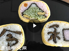 “粗卷庆典寿司”是日本千叶县的乡土料理。通过不同食材的搭配,切面呈现出各种各样的文字和花样。据说,由于大米供应短缺,在战后这种寿司的做法几乎失传……